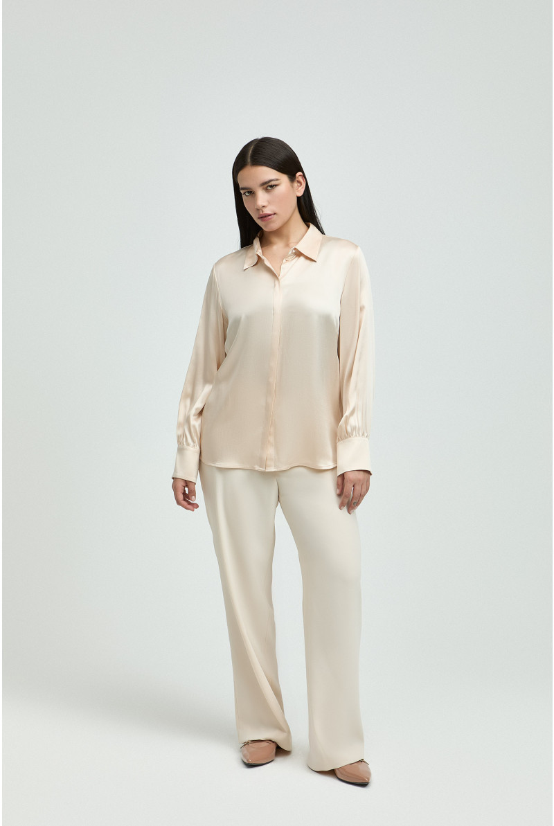 Deze broek met wijde pijpen is een echte Xandres-klassieker. Elegant, stijlvol en bovenal comfortabel. Eenvoudig te stylen met een sneaker voor een casual look of een elegante hakschoen voor een geklede uitstraling. De broek is vervaardigd van 100% gerecycleerde polyester.
