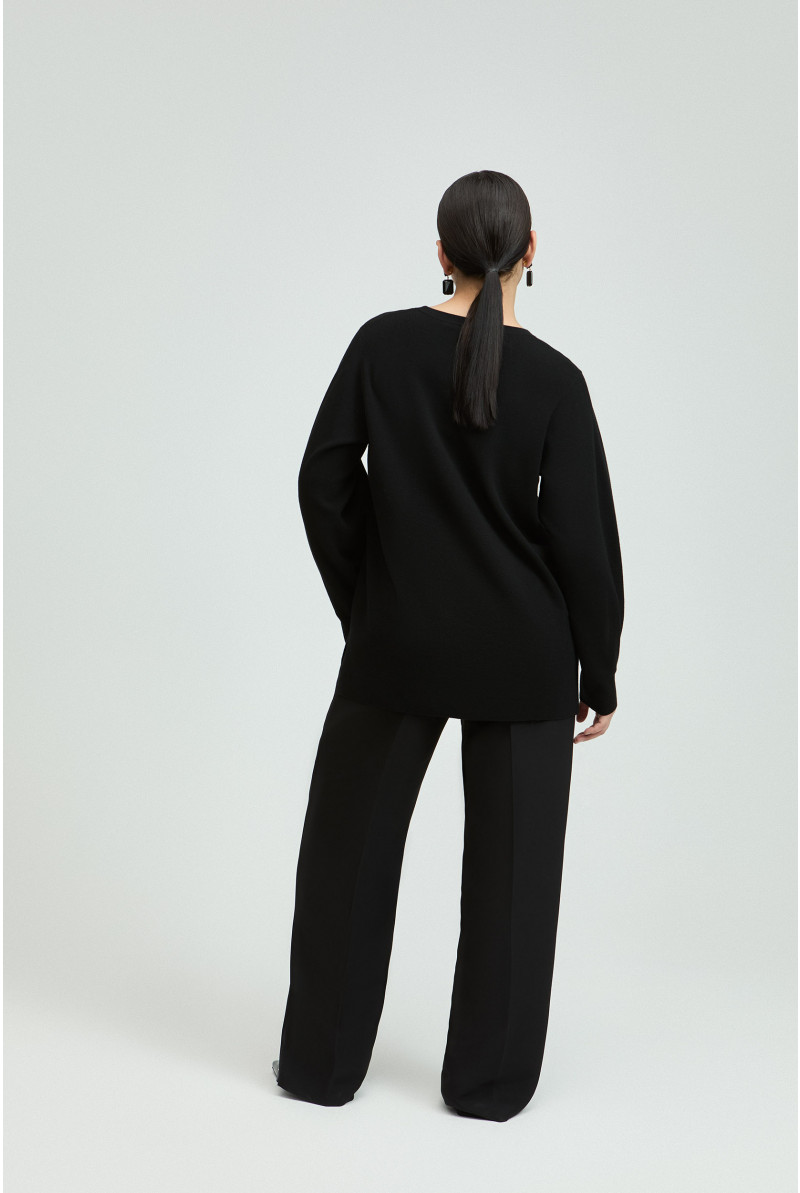 Wijde pijpen zijn een must in jouw kleerkast. Draag de broek met een elegante blouse om de stijlvolle en geklede look compleet te maken. De elastiek in de rug verhoogt het draagcomfort. De broek is vervaardigd van 45% gerecycleerde polyester.