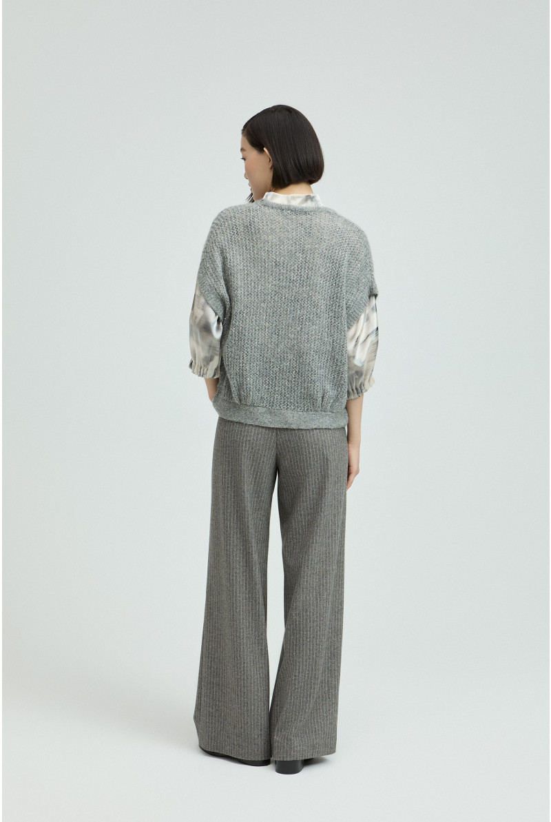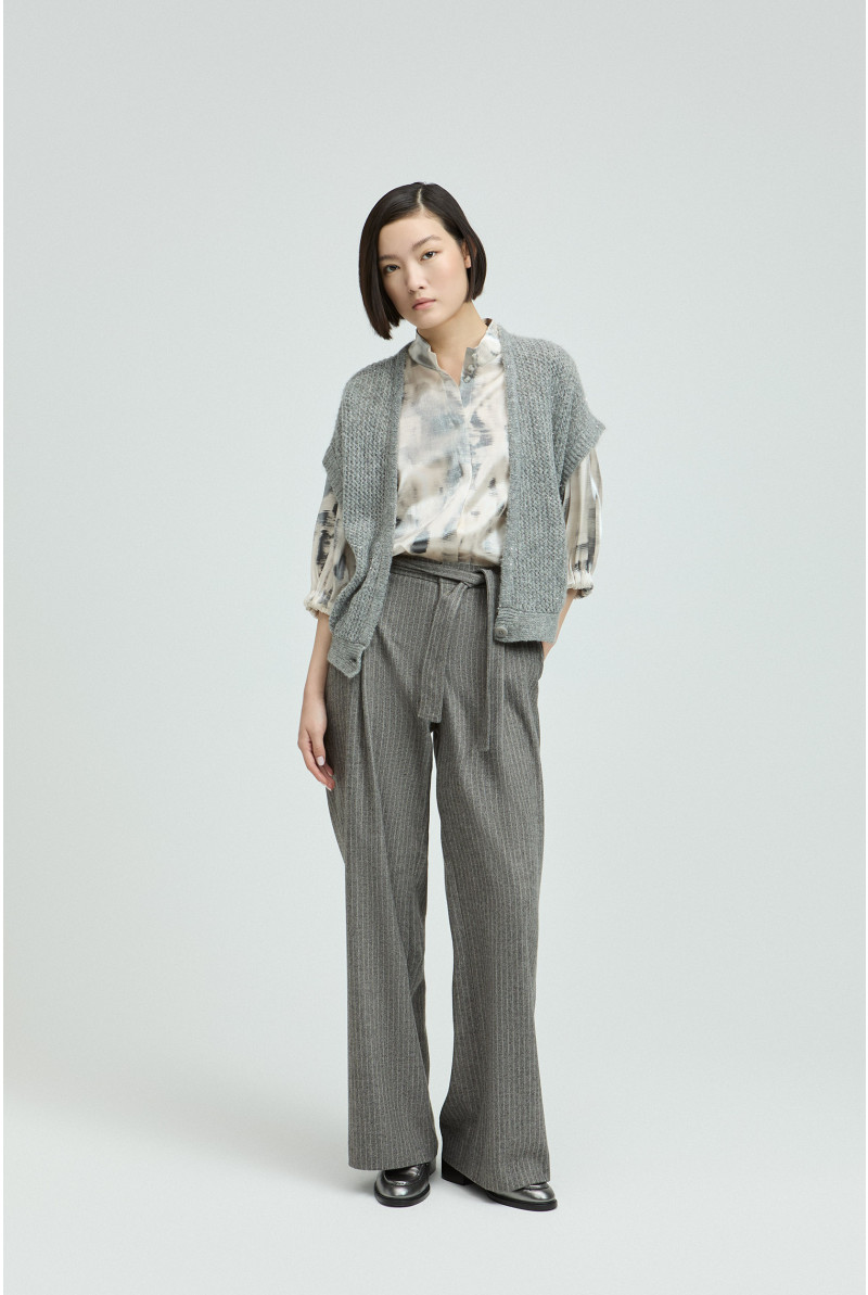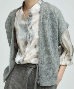 Deze gilet met korte mouwen leent zich perfect om te dragen over een blouse of t-shirt. De knoop onderaan laat je toe om de gilet stijlvol te sluiten zonder je mooie blouse of t-shirt volledig te verstoppen.