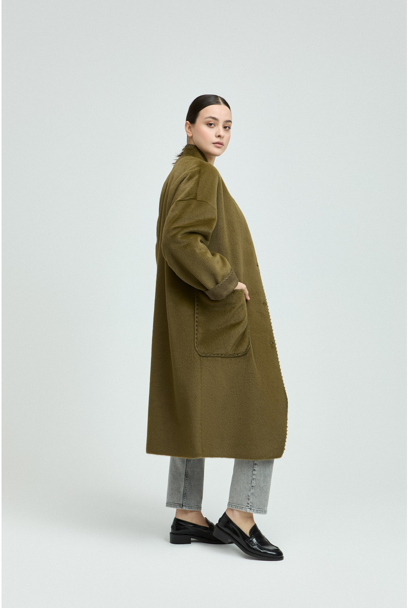 Ga stijlvol de herfst in met deze lange mantel. Modieus, elegant en helemaal Xandres. De zachte soepelvallende stof omhult je in warmte. Style met sneakers of een elegante laars.