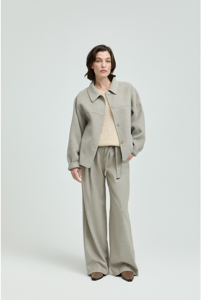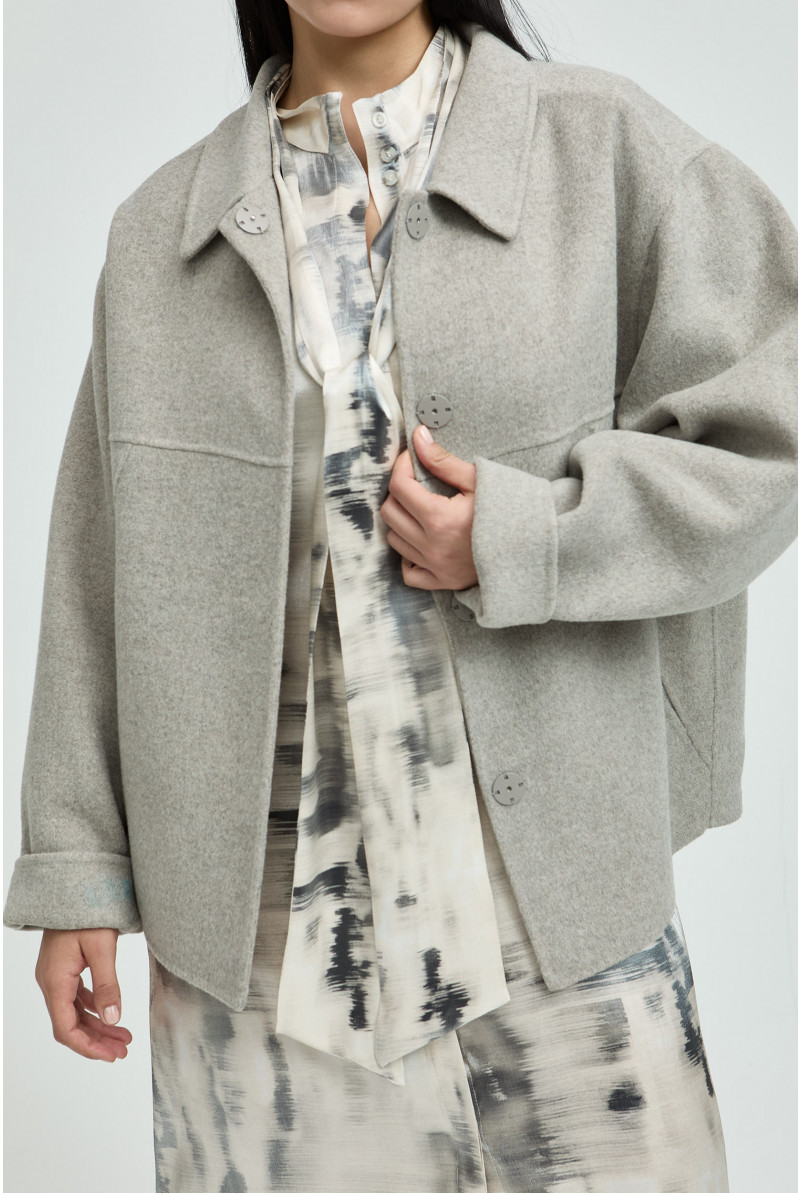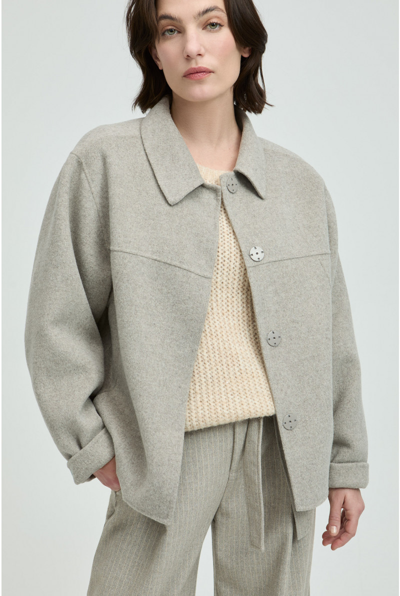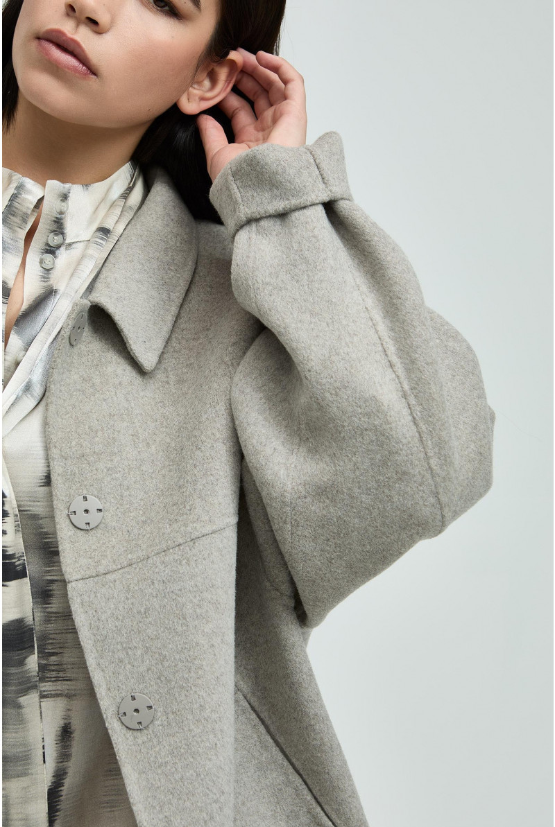 Maak je look compleet met dit kort jasje. De hemdkraag en blinde knoopsluiting maken het een geklede mantel. Ideaal om dit seizoen warm en stijlvol je favoriete outfit te dragen.