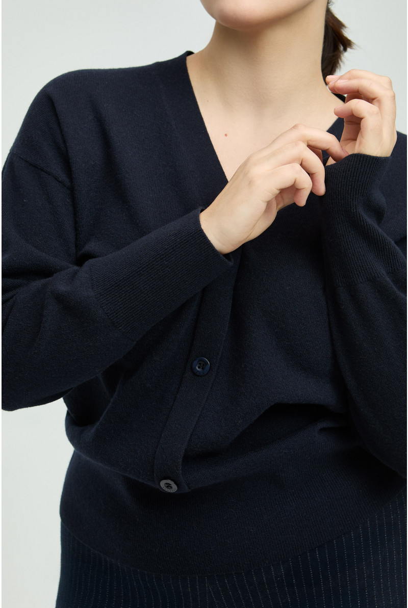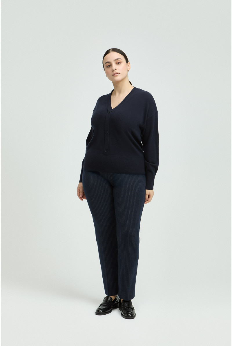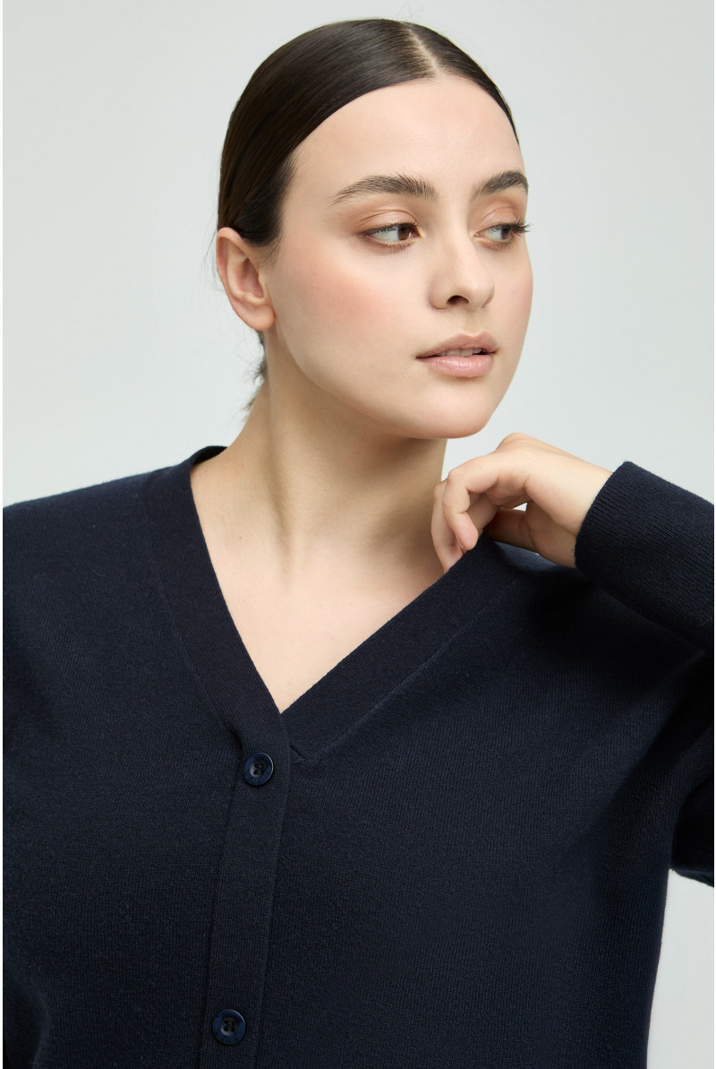 Een trui uit 100% merinowol kan deze herfst niet ontbreken in jouw kleerkast. De stof voelt luxueus aan en de knopen vooraan geven je look een extra touch. Combineer met je favoriete jeans of een geklede broek. Maak je outfit af met onze bijhorende sjaal in merinowol.